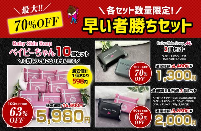 \早い者勝ち/【※50セット限定】\66%OFF/【ベイビースキンシリーズ石鹸2個セット】【メンズベイビー80g+ベイビーちゃん80g】【メー