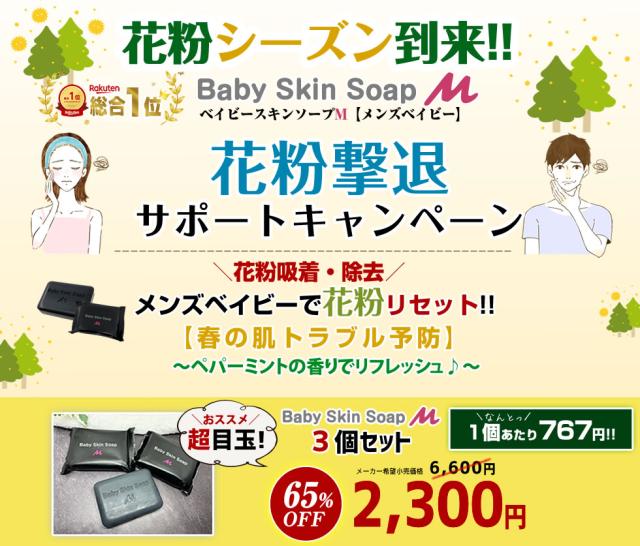 【花粉撃退サポートキャンペーン】\超目玉 65%OFF/ベイビースキンソープM【洗顔石鹸80g×3個】【メール便】送料無料※女性にも人気※