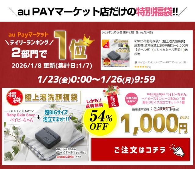 ★メンズベイビー1周年記念★\超目玉 60%OFF/ベイビースキンソープM【洗顔石鹸80g×3個】★2セットでもう1個+500円OFFクーポン⇒【1