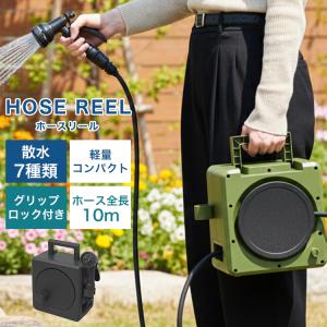 ホースリール ホース 10m 家庭菜園 観葉植物 2WAY 据え置き 手持ち 水道ホース 水まきホース 散水7パターン 散水ホース 洗車ホース 蛇口