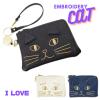 猫パスケース パスポーチ 合皮 リール付 伸びる バッグ 改札OK!猫刺繍 大人可愛い パスケース 定期入れ パスポーチ 車 キーケース メー