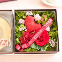 『Mother's day フラワーBOX with バームクーヘン』【プリザーブドフラワー 花 スイーツ 母の日 感謝 プレゼント ギフト】【送料無料】