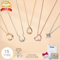ダイヤモンド ネックレス レディース 一粒 ゴールド ハート 馬蹄 月 ドロップ しずく ひし形 金属アレルギー対応 シルバー プラチナ 仕上