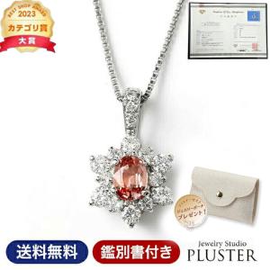 パパラチアサファイア ネックレス レディース PT プラチナ Pt900 鑑別書 プラチナネックレス 天然石 希少石 カラーストーン 色石 ペンダ