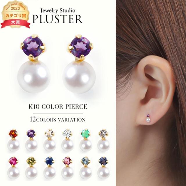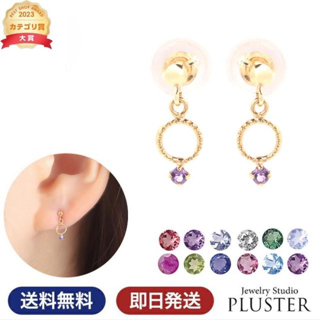 ピアス レディース 金属アレルギー 2月 誕生石 アメシスト 誕生石 天然石 K10 一粒 10金 ゴールド ルビー ムーンストーン ブルートパー