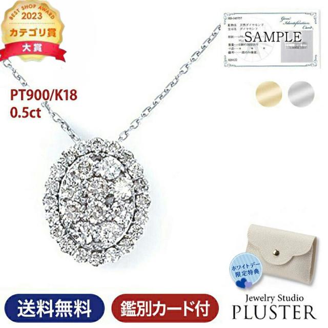 ネックレス レディース ダイヤモンド 取巻き 0.5ct プラチナ ダイヤネックレス PT900 18K 鑑別書 K18 18金 ペンダント シンプル ダイヤ