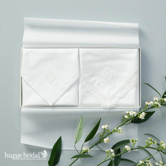 ブライダルハンカチ イニシャル ペア(男性用ノンレース&女性用レース)
