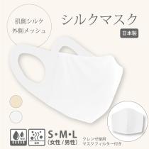 【マスク荒れ対策&飛沫防止に】シルクマスク/外側メッシュ生地タイプ(99%コロナウィルスを減少させる「クレンゼ」を使用したマスクフィルター1枚付き!)