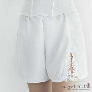 着慣れないウエディングドレスの足さばきをよくするフレアパンツ。