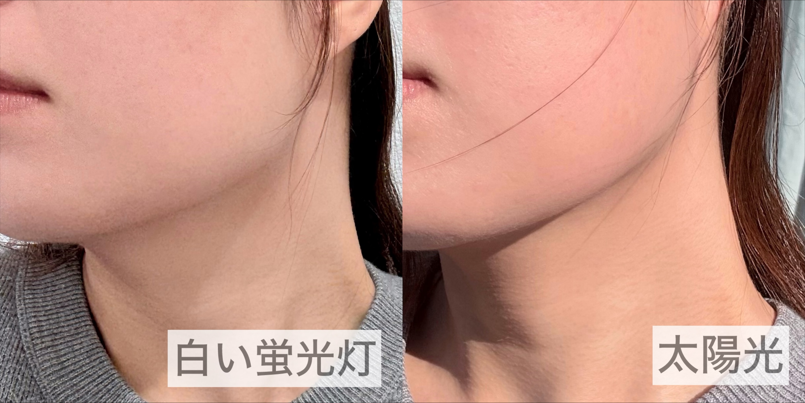 ※スキンケア後、化粧下地(下記商品↓メイクアップUVベース)を塗布した状態で、スマートフォンの標準カメラで撮影しています。撮影環境により、実際の見え方が異なる場合がございますのでご了承ください。
