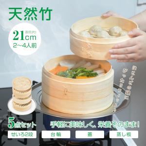 新生活 中華 せいろ 5点セット 蒸籠 蒸し板 受け台 2段 蓋 フタ 天然竹製 台輪 セイロ 直径21cm ステンレス 健康 ダイエット 鍋 フライ