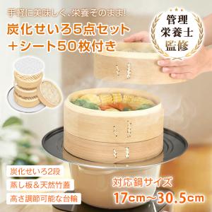 新生活 炭化加工 中華せいろ 5点セット 新生活 せいろ せいろ蒸し器 蒸し器 せいろ蒸し板 蒸籠 蒸し板 ステンレス 受け台 深型 蓋付き