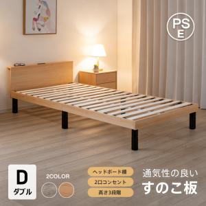 新生活 すのこベッド すのこ 木製 ロー ベッド ダブル D 2人用 ゆったり 高さ調整 組立簡単 耐荷重 200kg 2口 コンセント 宮棚付き 収納