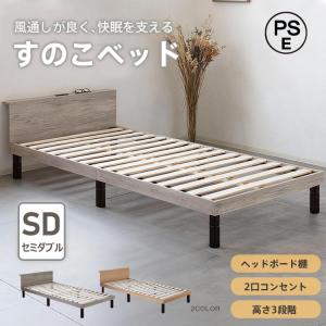 新生活 すのこベッド すのこ 木製 ロー ベッド セミダブル SD 1人用 ゆったり 高さ調整 組立簡単 耐荷重 200kg 2口 コンセント 宮棚付き