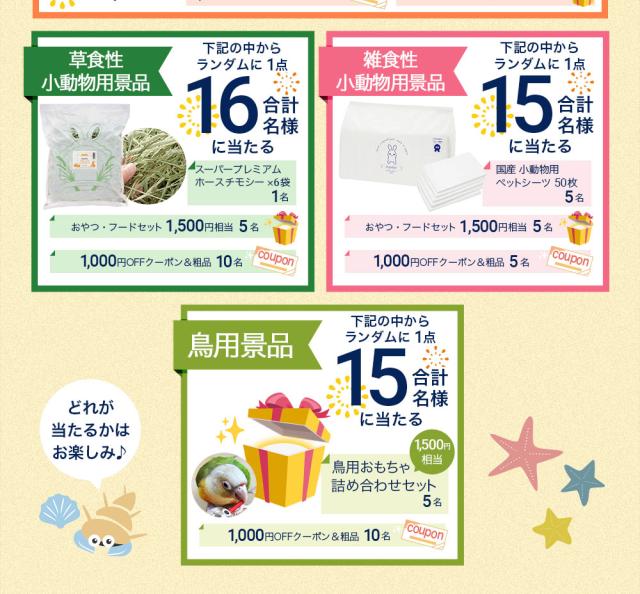 企画対象の犬用品+猫用品+小動物用品を合計1,980円以上購入
