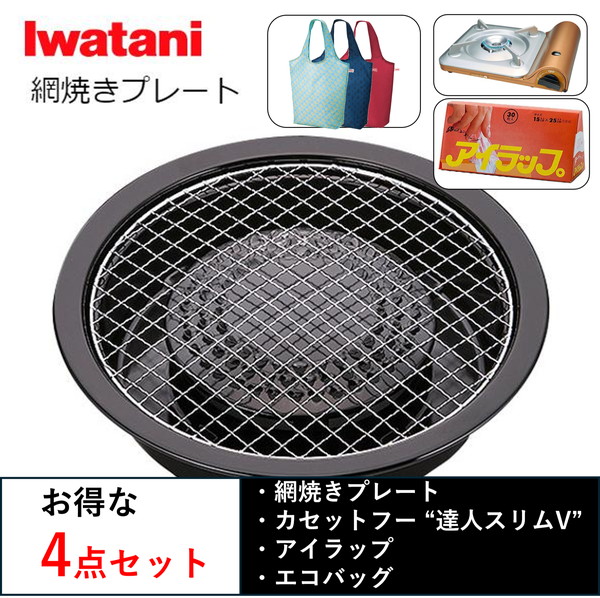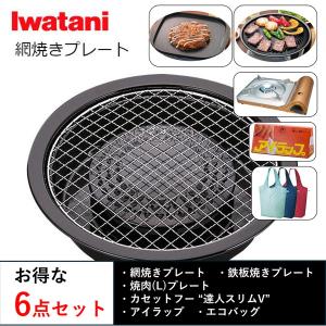 イワタニ 岩谷 網焼きプレート 6点セット (鉄板、焼肉L、カセットフー、アイラップ、エコバッグ)CB-A-TPP CB-A-YPL CB-TS-5 I-WRAP-MIN