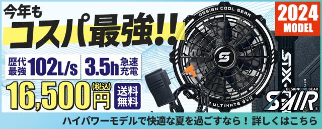 [即日発送]サンエス 空調作業服 作業着 空調風神服 ファンセット(フラットタイプ)+24Vバッテリーセット 2026年モデル 作業服 100L 涼しい