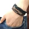 2連風 編み込みレザーブレスレット 1個販売 黒色...