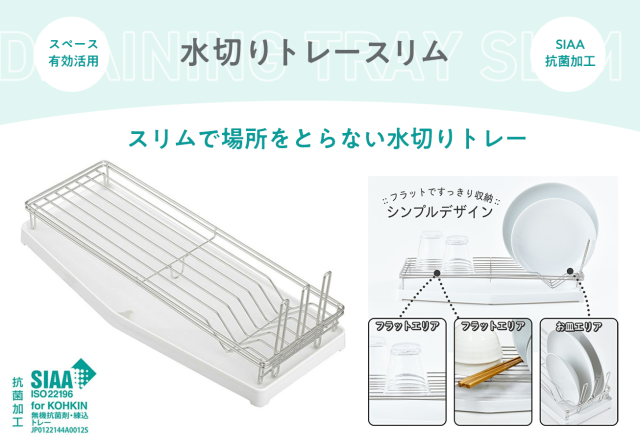 ステンレス水切りかごトレー スリム ロング 流れる&流れないが選べる2WAYトレー付