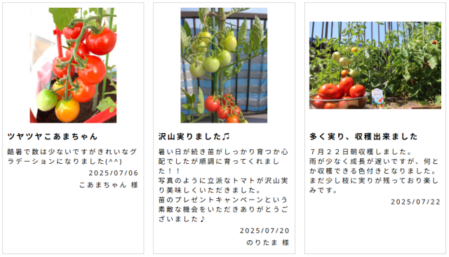 トマトが実る時期に「収穫報告キャンペーン」も開催予定なのでお楽しみに!