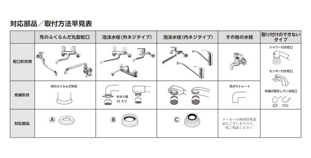 下記項目をご確認の上、お取付時には十分ご注意の上でお取り付けをお願いいたします。 ◆蛇口や断熱キャップが経年劣化されている場合、お取付けされても水漏れされる場合がございます。この場合は蛇口や断熱キャップの損傷が水漏れの原因となるため、蛇口や断熱キャップの交換が必要となります※別途費用が発生いたします ◆お取付時や使用後に何らかの理由により蛇口や断熱キャップが破損する場合がございます。この場合は元々の劣化や取付時の負荷など多様な原因が考えられるため、修理・交換費用などいかなる費用に関しても当ストアでは一切保証いたしかねます。 ◆お取付ができない蛇口もございます。事前に必ずご確認ください。お取り付けに関してご質問がある場合はお気軽にお問い合わせフォームよりご相談ください。 お取り付けに関するお問い合わせをいただく際は下記3点をご連絡ください。 1.蛇口先端部の画像 2.蛇口全体の画像 3.蛇口のメーカー名・型番 ※初期不良以外のご返品時の送料は全額お客様負担となります。 お取付けできない等の理由でも同様です。 |
