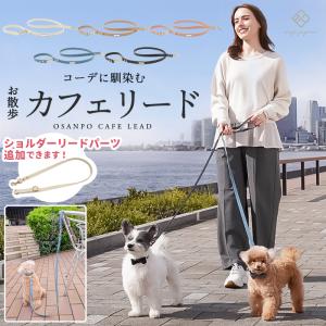 お散歩カフェリード\ショルダーリードパーツ追加できます/犬 リード 小型犬 合成皮革 迷子防止 脱走防止 おでかけ 丈夫 頑丈 おしゃれ