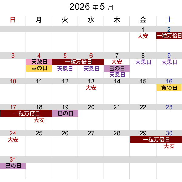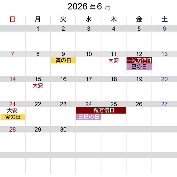 | 一粒万倍日(いちりゅうまんばいび) |