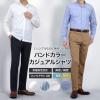 バンドカラーシャツ スリム メンズ 長袖 麻混紡 綿混紡 リネンブレンド コットンブレンド ジャケットインナー 涼しい 涼感 形態安定 軽量