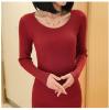 LAZA( ワインレッド ) レディース ストレッチ ボトミングセーター ラウンドネック 大人 可愛い きれいめ スタイル カジュアル コーデ
