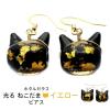 ホタルガラス ピアス 猫 光る イエロー ゴールド 蓄光 かわいい フック レディース 両耳用 沖縄 お土産 おしゃれ とんぼ玉 ねこ ネコ に