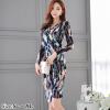 キャバ ドレス キャバドレス ワンピース ミディアムドレス シルエット タイト メリハリ リボン モノトーン ニット フェイクレイヤード ブ