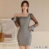 キャバ ドレス キャバドレス ワンピース ミニドレス 長袖 オーナメント スクエアネック クラシカル シルエット デコルテ フェミニン ラグ