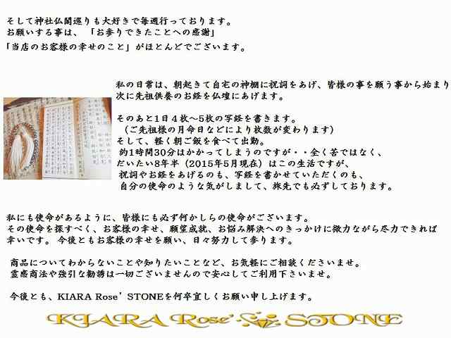 持つ者が強く念じることにより、人間が本来備える念(思い)を増強し、願望を実現に導く力を与えてくれます。