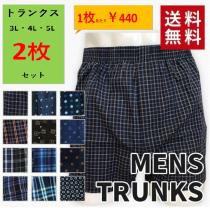 2枚組、紳士布帛柄物トランクス_3L・4L・5L(格子&ストライプ柄・プリント柄)【柄はおまかせ。】