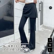 一体型スカート付きブーツカットパンツ ヨガパンツ 美脚パンツ ストレッチパンツ EL513H6 [M便 2/3] フレアパンツ フィットネスパンツ