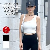 スタッズ付き ワンショルダートップス カップ付き 一体型 ノンワイヤー EL57N01[M便 1/2] リブ ワンショル タンクトップ クロップド丈 ダ