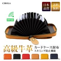 【CIBOLA】 高級牛革 カードケース 財布 本革 RFID スキミング防止 カード入れ ウォレット ジャバラ お洒落 本牛革 シンプル ラウンドフ
