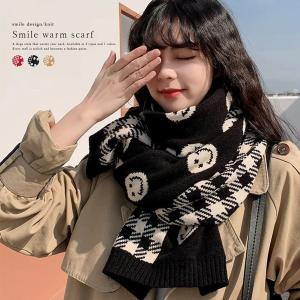 【今なら25%オフ!1,480円】スマイルマフラー レディース マフラー リバーシブル 冬 厚手 チェック柄 にこちゃん スマイル 肩掛け ニッ