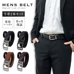 【専用BOX付き】ベルト 牛革 2本セット 高級感 メンズ 60日保証 オートロック 自動ベルト 穴なしベルト 革 牛革 レザー ビジネス 会社 ス