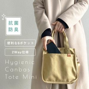 【在庫限り!】2way ショルダー ミニトートバッグ 抗菌防臭 キャンバス ポケット ランチバッグ エコバッグ 軽量 おしゃれ ミニバッグ 小