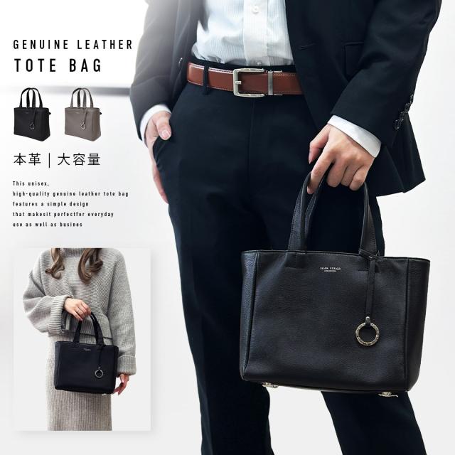 トートバッグ メンズ 革 レディース ハンドバッグ 本革 黒 大容量 シンプル レザー ビジネス 普段使い 仕切り キーリング付き 通勤 ビジ