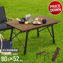【値下げ】 ピクニックテーブル 幅90cm アウトドアテーブル ロールテーブル 折りたたみ アルミ製 軽量 90 ロールトップ 木目調 おしゃれ
