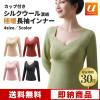 長袖Tシャツ カップ付き 吸湿発熱 暖かい ウール シルク 混紡 保温 秋 冬 冬用 防寒 裏起毛 両面起毛 インナー トップス レディース M L