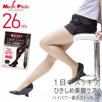 【2足セット】着圧 ナイロン ハイソックス メール便1セットまで 着圧カルテ ナノファイン加工 メディックピエド 保湿加工 レディース Leg