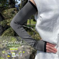 2点までメール便発送可 新作 冷感アームカバー 45cm丈 ミントの力でひんやり ボーダー 持続冷感加工 装飾無し アームカバー ロング UVカ