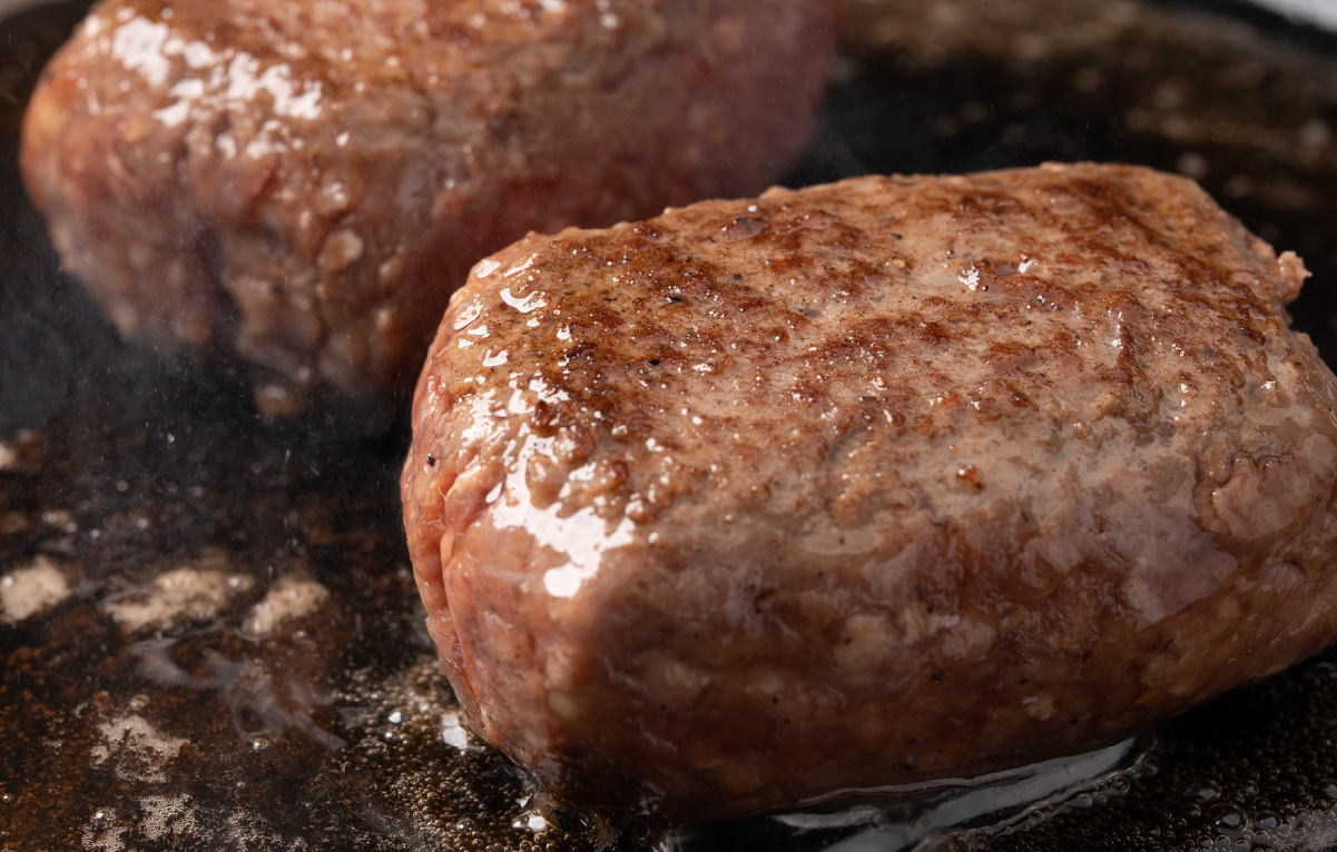 牛100%の粗挽き肉で食べ応え抜群!!付属のオニオンソースとの相性が抜群で、
