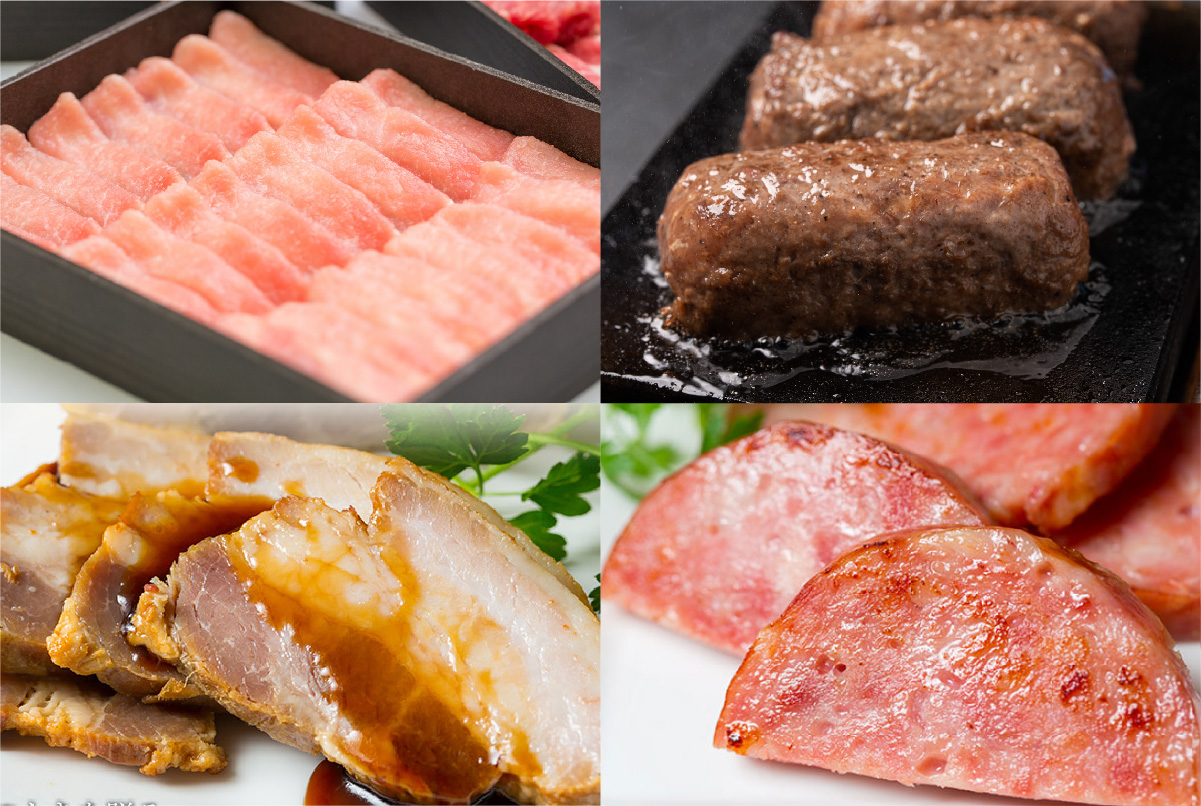 肉屋が素材や味付けにこだわった加工品三種類に、地元静岡のブランド豚「富士山 幸の豚