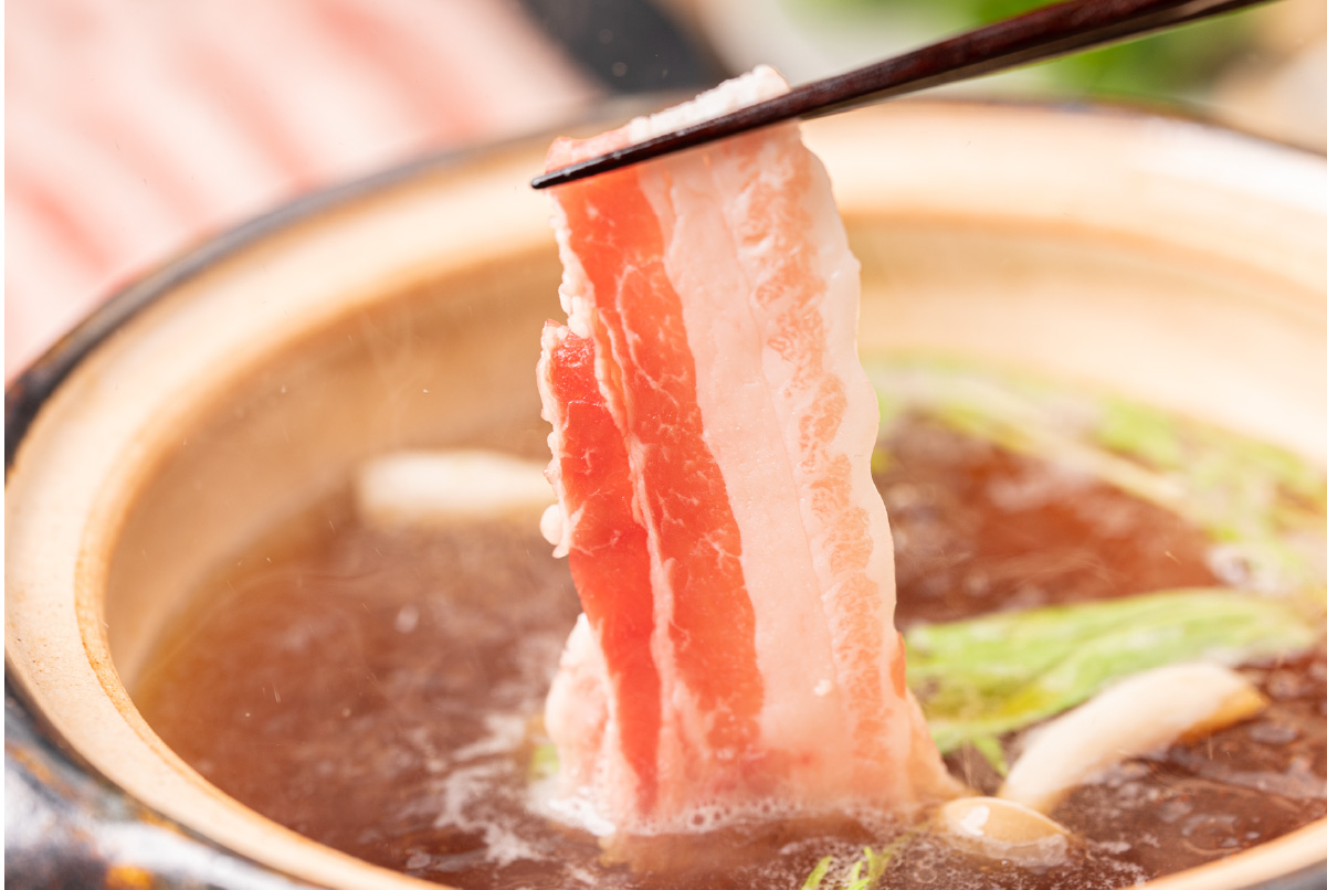 には脂身の旨味がたっぷり詰まっています。イベリコ豚の甘い脂を楽しむなら、豚しゃぶ鍋で決まりです♪