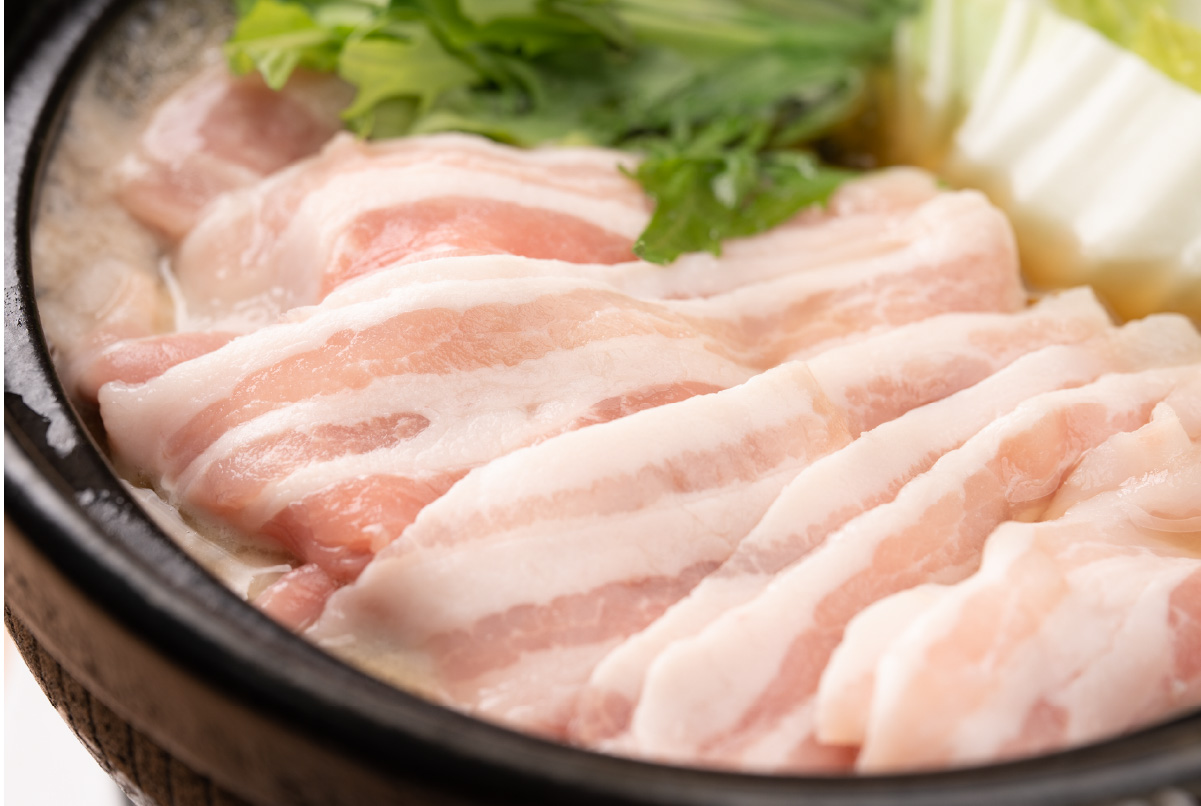豚バラのスライスはどんな鍋にも合わせやすいお肉のひとつ。豚バラ肉にはお野菜をたっぷり入れて作