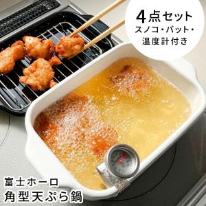 富士ホーロー 角型 天ぷら鍋 ホワイト スノコ・バット・温度計付き TP-20K.W 調理器 IH対応 ガス火 直火 食洗機対応 天ぷら フライ とん